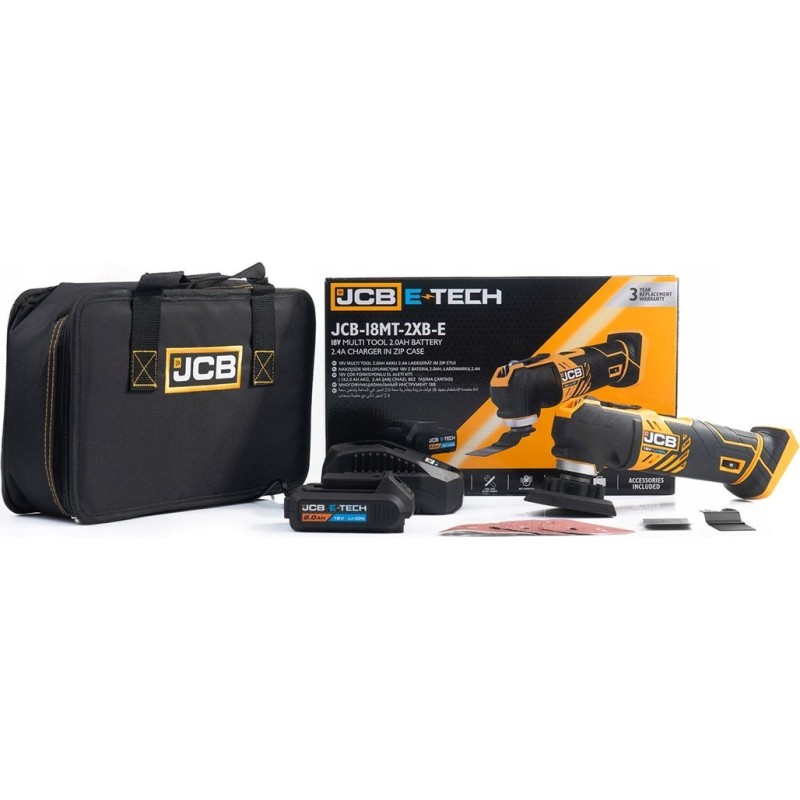 JCB 18-V-Multifunktions-Oszillationswerkzeug (Set: 2-Ah-Akku, Ladegerät, Tasche)