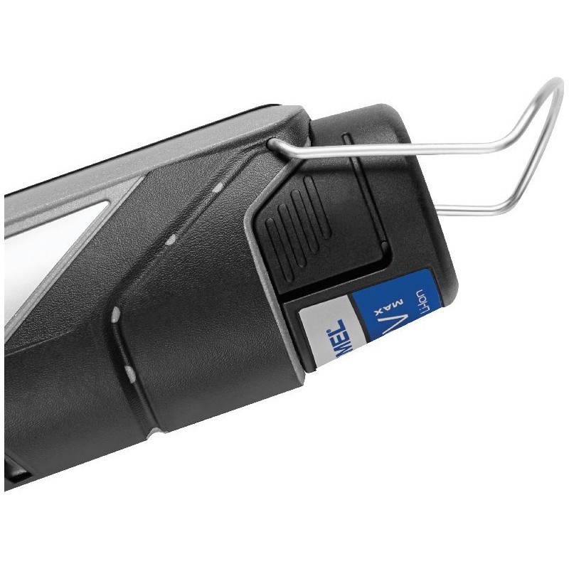 LED-Anzeigen für den Akkustatus informieren über die verbleibende Akkuleistung. Ihr Dremel 8240 ist mit einer Aufhängevorrichtung ausgestattet, mit der Sie es mithilfe der Dremel-Flexwelle an der Dremel-Halterung aufhängen können.