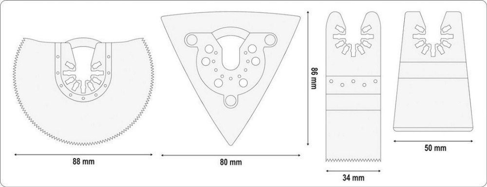 • Ermöglicht das Schneiden von Möbelplatten, das Unterschneiden von Türen und das Durchtrennen von Paneelen sowie Sockelleisten ohne Beschädigung des Laminats sowie von Metallelementen (Nägel, Schrauben).