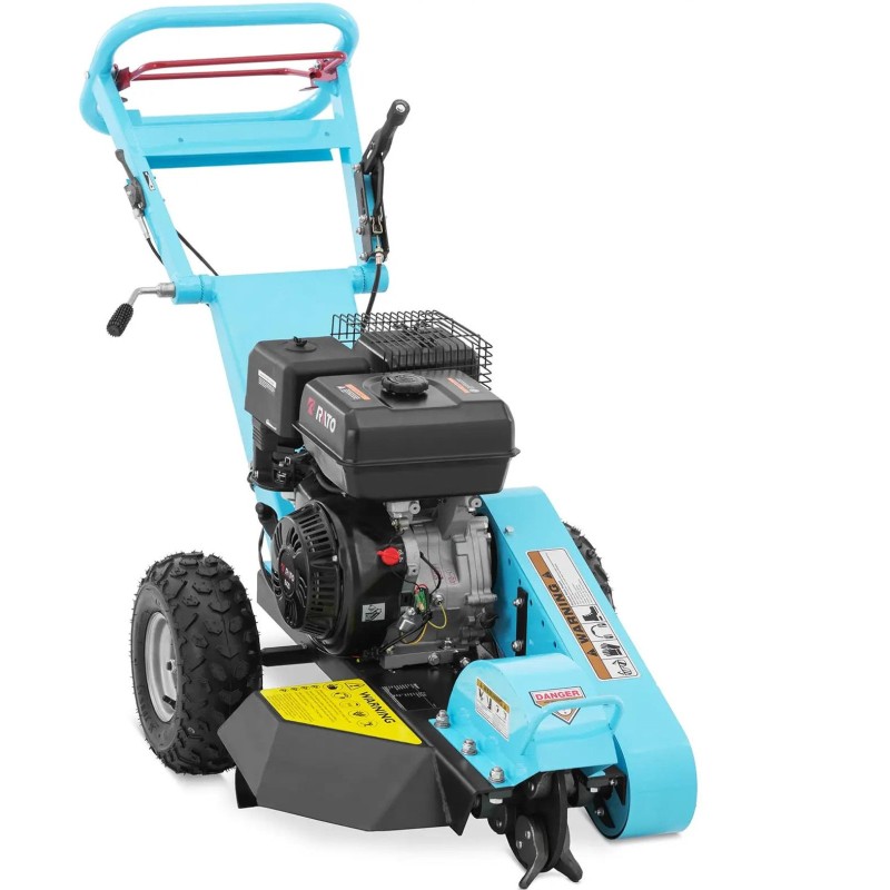 der kompakten Baumstumpffräse der Marke Hillvert lässt sich ein Baumstumpf mitsamt den Wurzeln aus dem Boden herausfräsen, ohne dabei die Umgebung zu beschädigen. Es handelt sich um eine wendige Maschine mit einem leistungsstarken Benzinmotor, die sowohl für professionelle Gärtner als auch für Hobbygärtner sehr hilfreich ist. Die handliche Baumstumpffräse ist mit einem leistungsstarken 15 -PS -Viertakt-Benzinmotor ausgestattet, der zwei Antriebsriemen des Schneidmessers auf eine Drehzahl von 3600 U/min antreibt. Der kraftvolle Antrieb und die 8 Zähne mit Hartmetallspitzen ermöglichen eine schnelle Entfernung von Baumstümpfen oder Wurzeln. Im Handumdrehen bleiben vom Baumstumpf nur noch Späne übrig. Das Gerät gräbt sich bis zu 203 mm tief in den Boden ein und schneidet Baumreste kontinuierlich bis zu 230 mm über dem Boden ab. Die Schneidscheibe hat einen Durchmesser von 240 mm und eine Breite von 12 mm . Diese Werte ermöglichen es, Baumstümpfe effektiv zu entfernen, ohne größere Schäden um die Scheibe herum zu verursachen. Der Baumstumpffräser zeichnet sich durch eine kompakte und schlanke Bauweise aus, sodass er problemlos in engen Räumen eingesetzt werden kann. Der ergonomische Griff und die großen Räder erleichtern die Handhabung erheblich. Der 6,5-Liter -Kraftstofftank und der 1,1-Liter-Öltank versorgen den Motor.