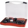 Das Set enthält außerdem einen Kunststoffkoffer, der die Aufbewahrung und den Transport der Werkzeuge erleichtert. Der Fräseraufnahmehalter mit 6 mm Durchmesser ermöglicht einen einfachen Werkzeugwechsel und erhöht so den Arbeitskomfort.