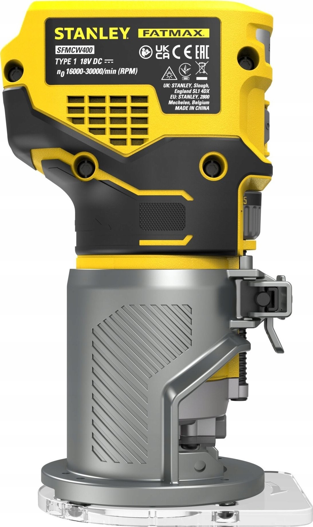 Die Stanley SFMCW400B zeichnet sich durch ein kompaktes Design und ein robustes Gehäuse aus Aluminiumguss aus, was für Langlebigkeit und Widerstandsfähigkeit sorgt. Darüber hinaus ermöglicht der transparente Sockel des Werkzeugs eine hervorragende Sicht auf den Schnittbereich, was die präzise Ausführung von Aufgaben erleichtert.