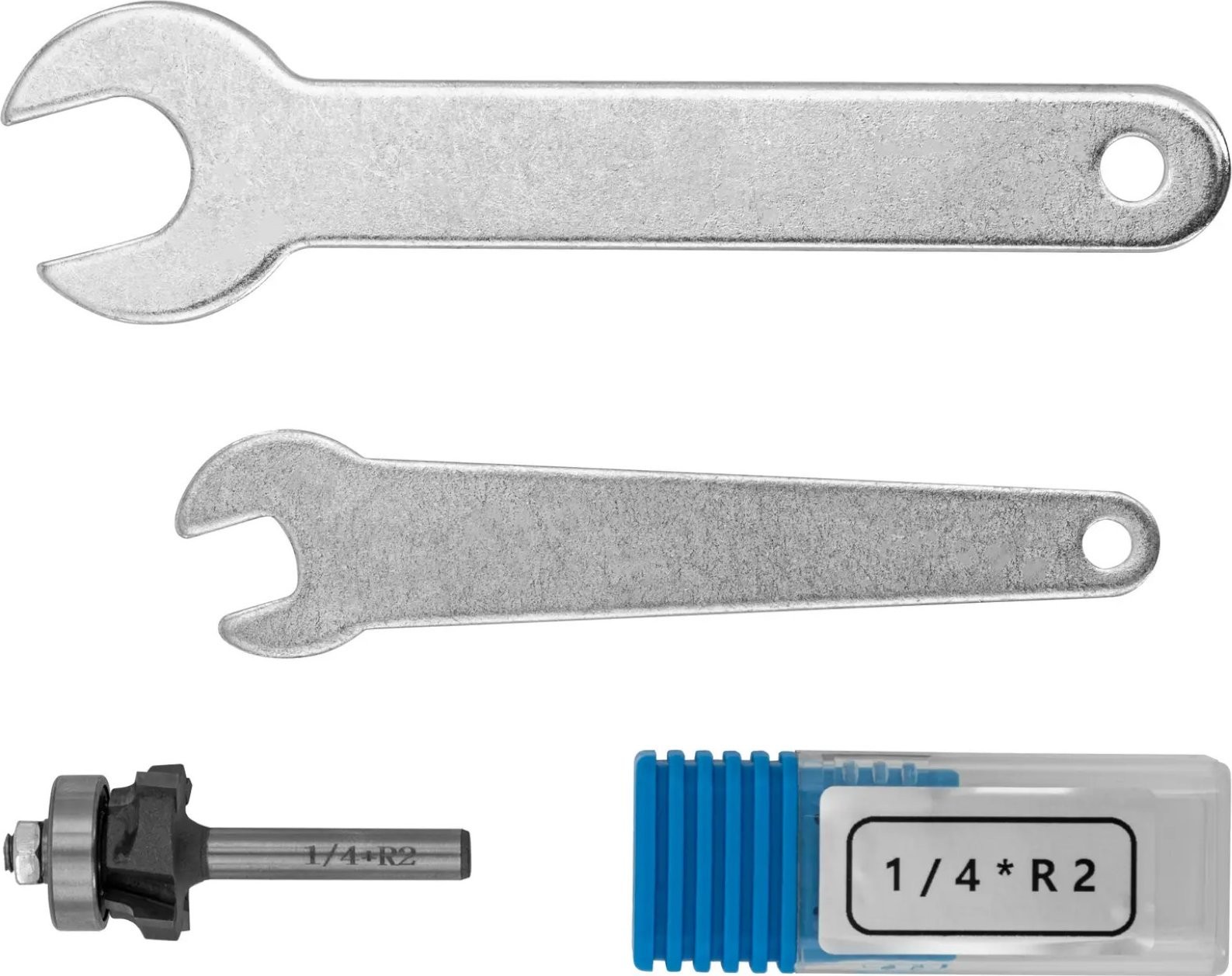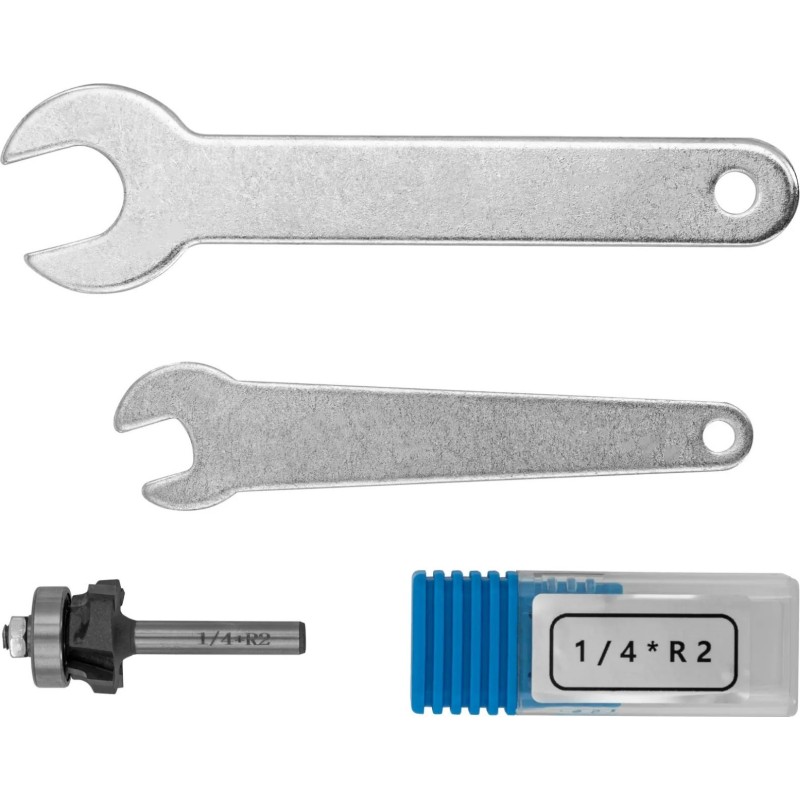 • Abgerundete Details – dank der 1/4"-R2-Klinge eignet sich die Kantenfräse besonders für präzise Arbeiten und Abrundungen