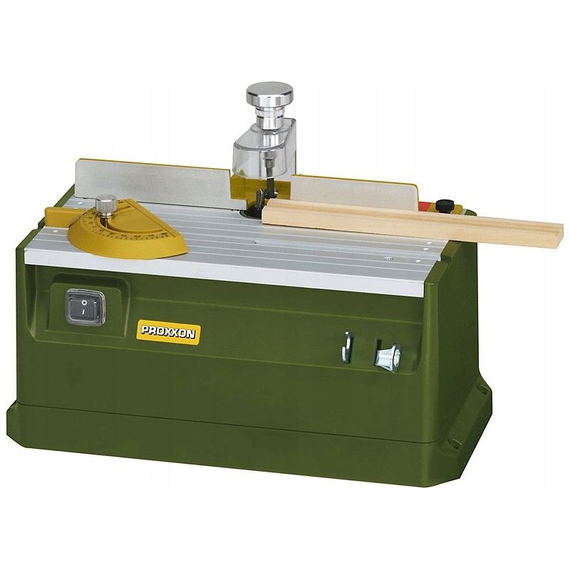 Zur Vorbereitung von Bilderrahmen und zum Ausschneiden verschiedener anderer Profile. Ermöglicht die präzise Bearbeitung von Kanten und langen Werkstücken (im Modellbau z. B. Türen, Gebäudeteile). Langlebiger und leistungsstarker, staubgeschützter Motor mit Zahnriemenantrieb. Doppelt gelagerte Spindel. Das Werkzeug wird in Dreifachspannzangen gehalten (je eine 2,4 – 3 – 3,2 mm im Lieferumfang enthalten). Die Fräshöhe ist über ein Handrad einstellbar. Stabiler Aluminiumtisch mit Winkelmesser und Anschlag sowie Fräserschutz.