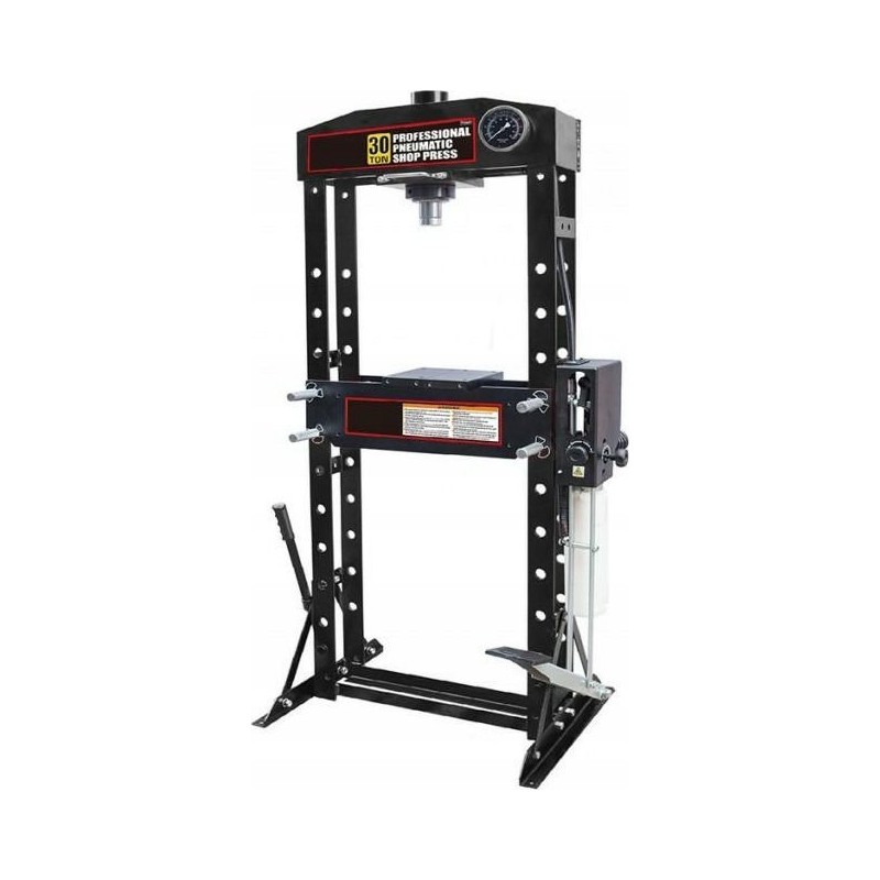 Diese Presse arbeitet im Bereich von 0 bis 1025 mm. Die Presskraft dieser Hydraulikpresse beträgt 30 Tonnen. Das Gerät ist mit einem gut ablesbaren Manometer ausgestattet, das in bar skaliert ist, was das Ablesen des aktuellen Druckwerts erleichtert.