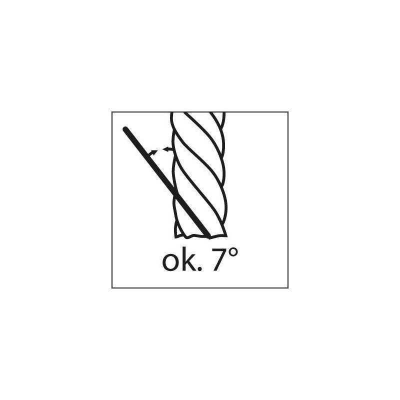 Verwendungszweck: Zum Aufbohren von Durchgangsbohrungen. Dank der kurzen Schneidlänge (ab 3,8 mm) bedingt auch zum Vorbohren von Sacklöchern geeignet. Geeignet für hochlegierte und gehärtete Stähle bis HRC 52, Gusseisen, weiche Nichteisenmetalle wie Aluminium und Messing.