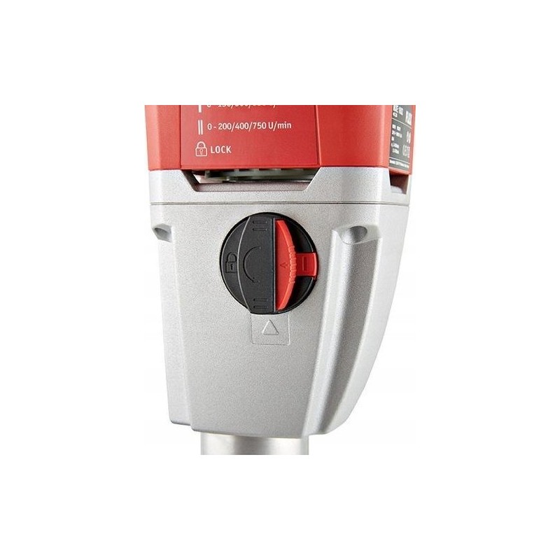 • Komfortabler Schalter mit 3-stufiger Regelung, vom Griff aus bedienbar und mit einer Gummiabdeckung geschützt. Stufe 1: Reinigung, Stufe 2: Linkslauf, Stufe 3: Rechtslauf