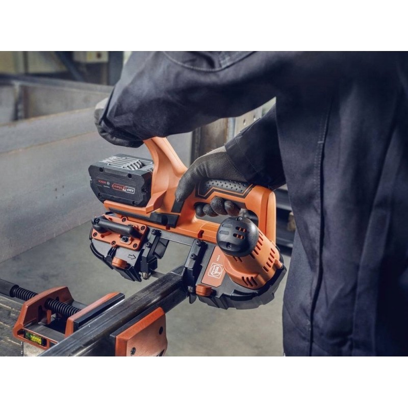 Ergonomische und handliche Bandsäge für komfortables Schneiden verschiedener Materialien im Handgriff.