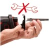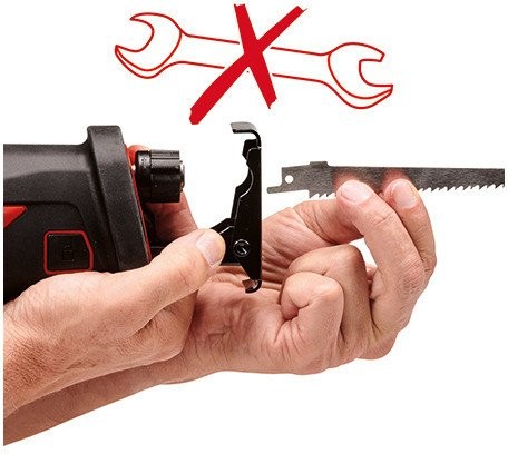 Um das Sägeblatt, das jederzeit werkzeuglos gewechselt werden kann, optimal zu nutzen, ist die Akku-Universalsäge mit einem werkzeuglos verstellbaren Fuß ausgestattet. Der vordere Teil der Säge ist zudem staubdicht, um Motor und Getriebe zu schützen.