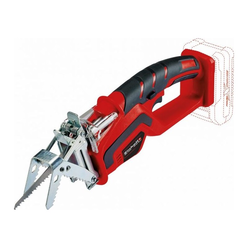 Die GE-GS 18 Li Solo ÄSTSÄGE von Einhell gehört zur umfangreichen Familie der Akku-Werkzeuge im Power X-Change-System für Haus und Garten. Das Gerät bewährt sich beim Schneiden von Ästen, insbesondere dort, wo keine Kettensäge eingesetzt werden kann. Die Säge eignet sich zum Schneiden von Ästen mit einem Durchmesser von bis zu 70 mm (bei Verwendung einer zusätzlichen Klemmvorrichtung) oder bis zu 90 mm (ohne Klemmvorrichtung). Dank ihrer kompakten Abmessungen, ihres geringen Gewichts und des gummierten Griffs ist die Arbeit mit diesem Gerät ein reines Vergnügen.
