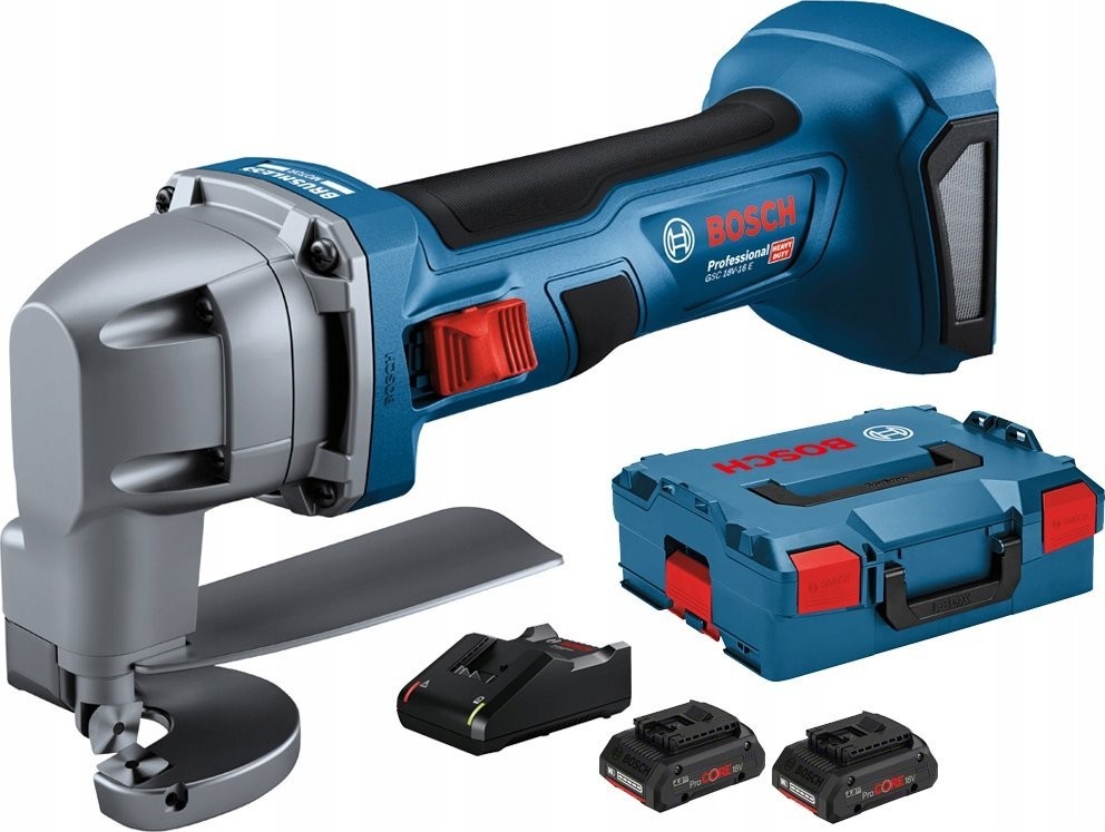• Produktname: Bosch 18-V-Profi-System: Akku-Metallschere GSC 18V-16 E (gleiche Leistung wie ein 700-W-Netzwerkwerkzeug, bürstenloser Motor, 2 ProCORE18V-Akkus mit 4,0 Ah, Ladegerät GAL 18V-40, L-BOXX)