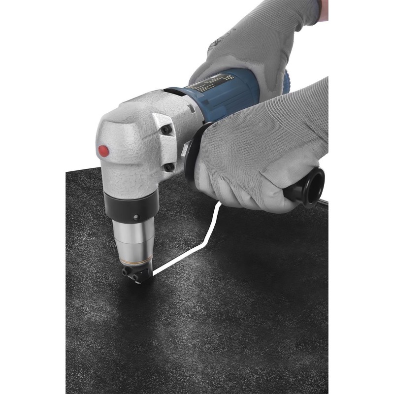 Dank der hohen Leistung (625 W) und Effizienz des Geräts bewähren sich die elektrischen Blechscheren im täglichen, intensiven Einsatz. Der Motor dreht sich mit einer Drehzahl von 1000 U/min. Technische
