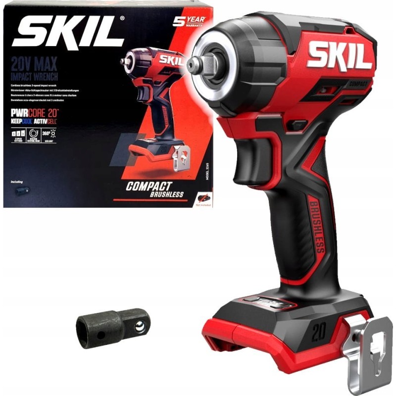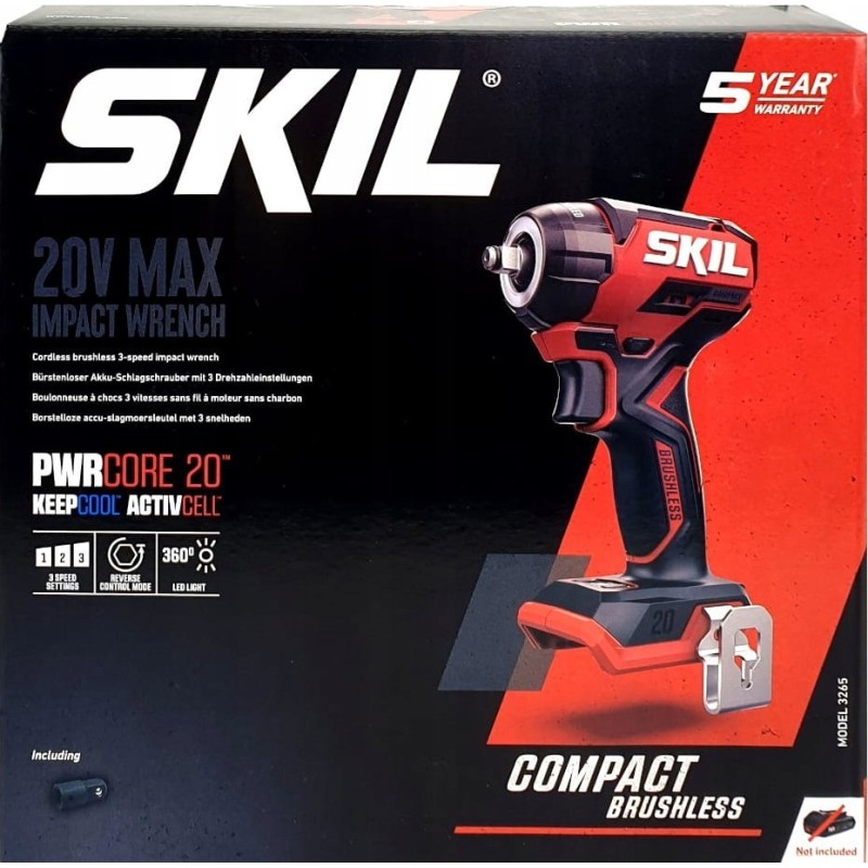 Im Lieferumfang enthalten sind der bürstenlose Schlagschrauber SKIL 3265, ein 3/8"-Sechskantadapter auf 1/2", eine Metall-Gürtelschlaufe sowie eine Bedienungsanleitung. Bitte beachten Sie jedoch, dass Akku und Ladegerät nicht zum Standardlieferumfang gehören.
