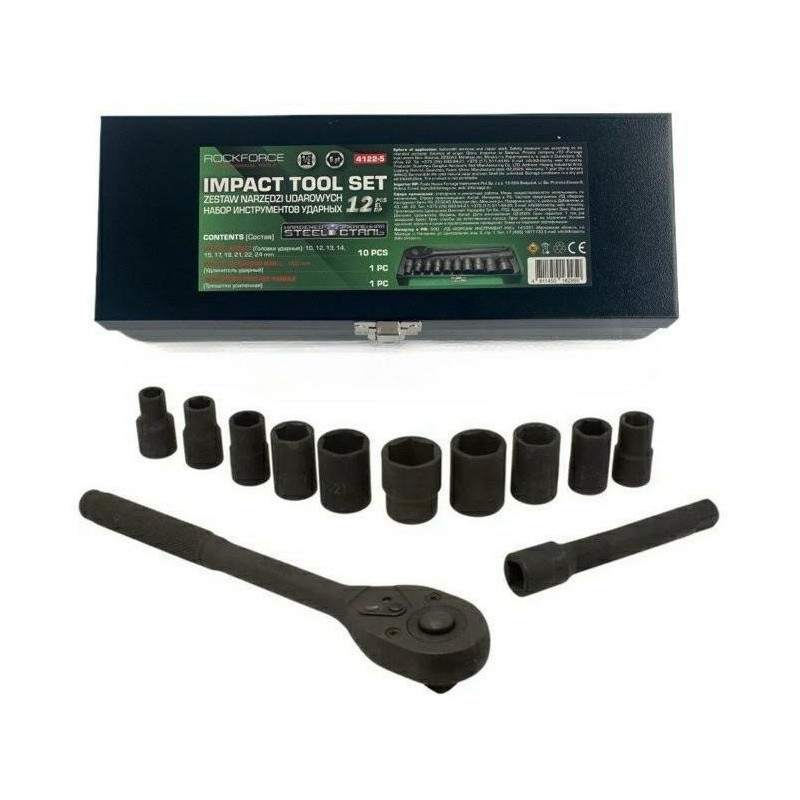 ROCKFORCE SCHLAGSCHLÜSSEL-SATZ, 12-teilig, 1/2" Sechskant (10–24 mm) – Professionelle Werkzeuge für intensive Arbeiten