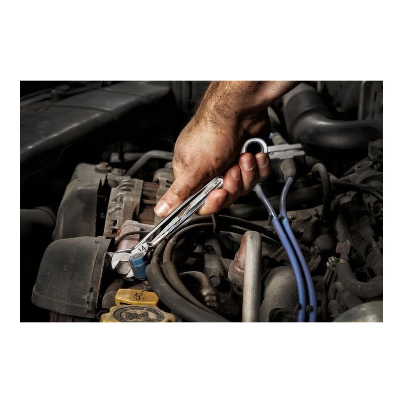 • Der Ratschenmechanismus mit 144 Zähnen ermöglicht das Arbeiten in engen Räumen.