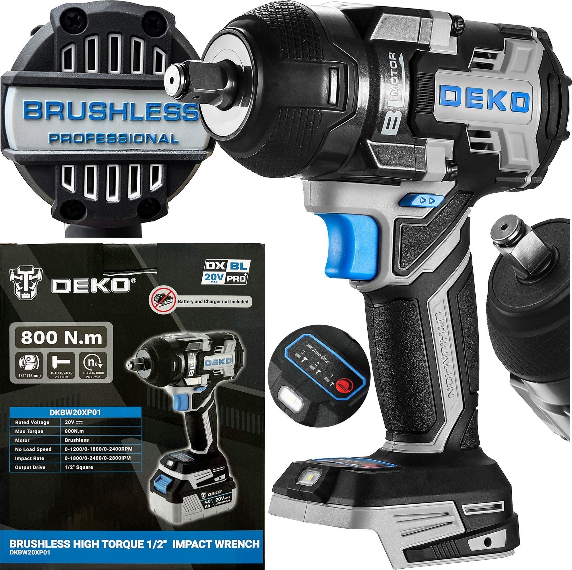 ✔ Leistungsstarker bürstenloser Motor ✔ Hohes Drehmoment von 800 Nm ✔ 3 Schraubmodi + 2 Löse-Modi ✔ Gehärteter, verstärkter 1/2-Zoll-Aufnahmeschaft