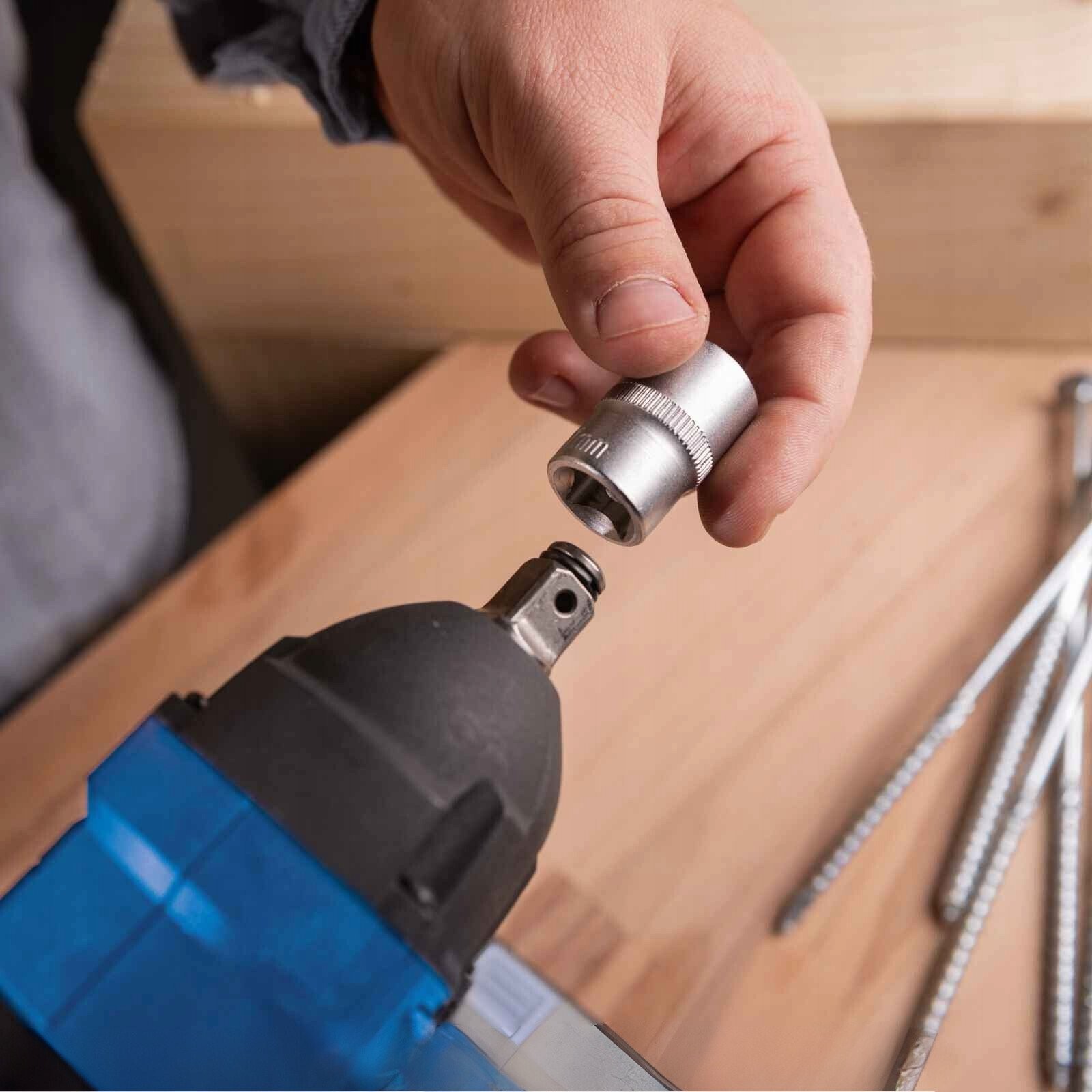 • 1/2-Zoll-Aufnahme mit Spannmechanismus für präzisen Sitz und einfachen Werkzeugwechsel