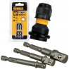 Set mit HEX-Adaptern für Steckschlüsseleinsätze 1/4", 3/8", 1/2". Die Adapter sind aus Stahl gefertigt, zusätzlich wurde die Oberfläche oxidiert, was für Robustheit und eine lange Lebensdauer sorgt.