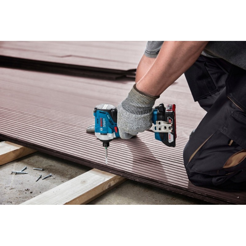 Der Bosch GDR 18V-215 Professional Schlagschrauber ist ein modernes Akku-Werkzeug, das sich hervorragend zum Schrauben in harte Materialien wie Holz und Metall eignet. Dank eines maximalen Drehmoments von 215 Nm und einer Drehzahl von bis zu 3300 U/min garantiert dieses Gerät Effizienz und Präzision bei jeder Aufgabe.