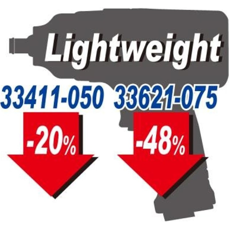 King Tony 3/4"-Komposit-Schlagschrauber. Drehzahl 8000 Umdrehungen pro Minute. Durchschnittlicher Luftverbrauch 190 l/min. Maximales Drehmoment 1491 Nm. Gewicht 2,35 kg, Länge 211 mm. Produktdatenblatt – 33681-100