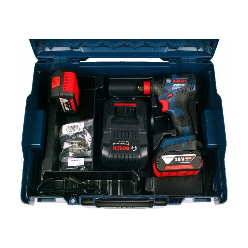 • Im Lieferumfang enthalten sind GBA 18V-Akkus, die auch zu anderen Bosch Professional 18V-Akkuwerkzeugen passen