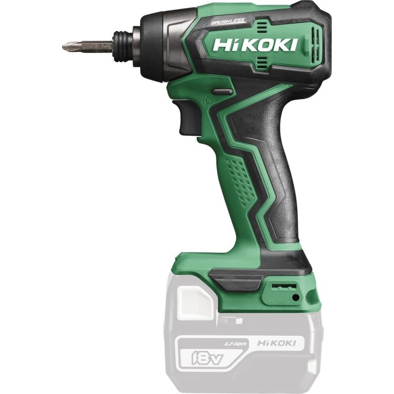 Der Akku-Schlagschrauber WH18DD W4Z von Hikoki ist ein weiteres Modell in dieser Produktkategorie, die die Marke Hikoki anbietet. Bei der Entwicklung des Werkzeugs lag der Fokus auf noch mehr Ergonomie und Arbeitskomfort an schwer zugänglichen Stellen. Daher ist der Schrauber WH18DD um 19 % kürzer und um 14 % leichter als Standardmodelle, z. B. der WH18DJL. Die kompakte Bauweise, aber auch die hohe Leistung konnten unter anderem durch den Einsatz eines bürstenlosen Motors erreicht werden. Der Schrauber ist außerdem mit einer LED-Beleuchtung, einem Drehzahlschalter, einem 1/4"-Sechskantaufnahme und einem gummierten Griff ausgestattet. Er ist ein hervorragendes Werkzeug für alle Montagearbeiten. Die Version W4Z besteht aus dem gleichen Gehäuse, wobei Akku und Ladegerät separat erworben werden müssen.