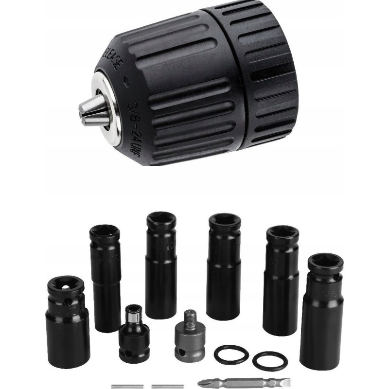 • Lange Steckschlüssel: 14, 17, 18, 19, 21, 22 mm, Adapter von 1/2" auf HEX sowie einen Bit für den Schraubendreher