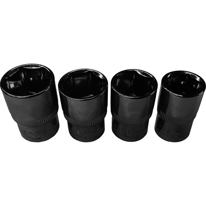 Schlagschrauber 450 W, 350 Nm maximales Drehmoment (Max. Drehmoment links: 350 Nm, Max. Drehmoment rechts: 180 Nm); Leistung 450 W, 1/2"-Aufnahme, Drehzahl 3000 U/min, im Lieferumfang enthalten sind vier Steckschlüsseleinsätze in den Größen 17, 19, 21 und 22 Millimeter