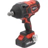 Hochleistungs-Akku-Schlagschrauber. Er eignet sich hervorragend für Kfz-Werkstätten, Reparaturen an Lieferwagen und LKWs sowie an Bau- und Landmaschinen. Er ist in der Lage, jede noch so festsitzende, sogar verrostete Schraube bis zur Größe M41 zu lösen. Das Gerät verfügt über einen 3/4''-Spindelantrieb; im Lieferumfang ist zusätzlich ein Adapter für 1/2''-Steckschlüsseleinsätze enthalten.