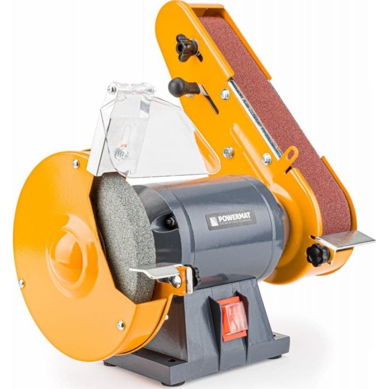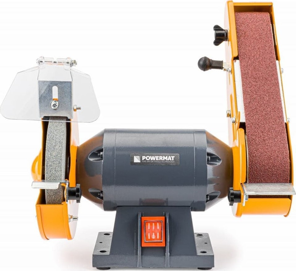 Die Tischschleifmaschine POWERMAT ist für Heimwerker zur Bearbeitung aller Arten von Weichmetall und Holz bestimmt. Sie ist mit einem Schleifband und einer Schleifscheibe ausgestattet, die die Funktionalität des Geräts erhöhen. Das Gehäuse der Schleifmaschine besteht aus robustem und langlebigem Metall, das dem Werkzeug eine lange Lebensdauer und hohe Belastbarkeit verleiht.