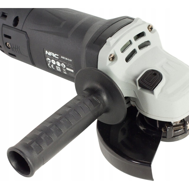 Ein ergonomisch geformtes Gehäuse und ein zusätzlicher, mit rutschfestem Material überzogener Handgriff sorgen für einen bequemen Halt des Werkzeugs. Darüber hinaus verfügt der Winkelschleifer NAC AGE120-S-GY über eine Drehzahlregelung und einen um 90 Grad verstellbaren hinteren Handgriff.
