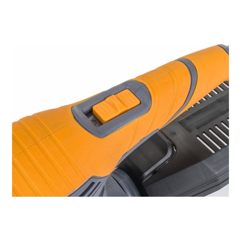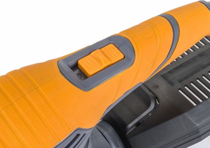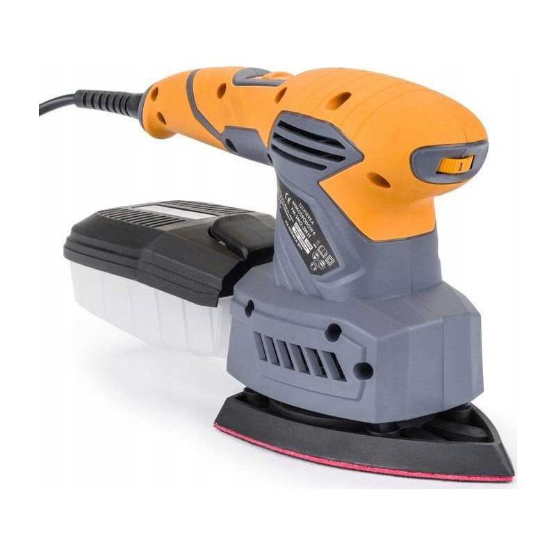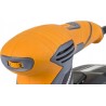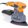 Für maximalen Komfort und Sicherheit bei der Anwendung ist der Schleifer mit einem speziellen, gummibeschichteten, rutschfesten Griff ausgestattet. Die exzentrische Bewegung sorgt für einen gleichmäßigen Abtrag des Werkstücks ohne Rillen und Unebenheiten. Die Drehzahl lässt sich über einen Drehknopf an der Oberseite der Schleifmaschine einstellen. Die Schleifmaschine ist so konzipiert, dass sie sowohl von Rechts- als auch von Linkshändern verwendet werden kann.