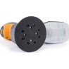 Der Exzenterschleifer kann an eine industrielle Absauganlage angeschlossen werden oder mit dem mitgelieferten Staubbehälter verwendet werden. Das Set ist mit einem speziellen Adapter zum Anschluss externer Anschlüsse ausgestattet.