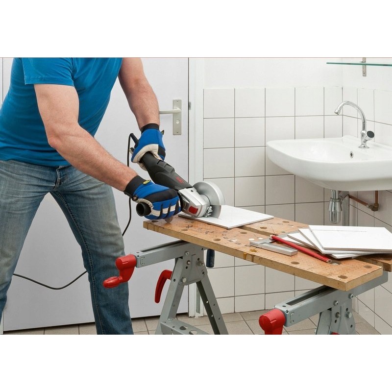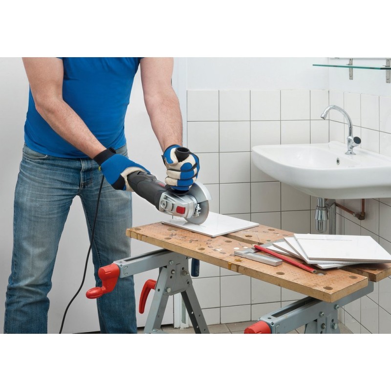 Der Winkelschleifer funktioniert dank seiner einfachen und zugleich zuverlässigen Konstruktion. Ein spezieller Mechanismus versetzt die Scheibe in eine Drehbewegung. Dadurch eignet sich dieses Elektrowerkzeug hervorragend zum Schneiden von Metall-, Holz- und Keramikelementen sowie sogar von Steinen oder Kunststoffen. Mit der richtigen Auswahl der Scheibe eignet sich der Winkelschleifer für viele Renovierungs-, Werkstatt- und Blecharbeiten. Die vielseitige Verwendbarkeit ist einer der wichtigsten Vorteile.
