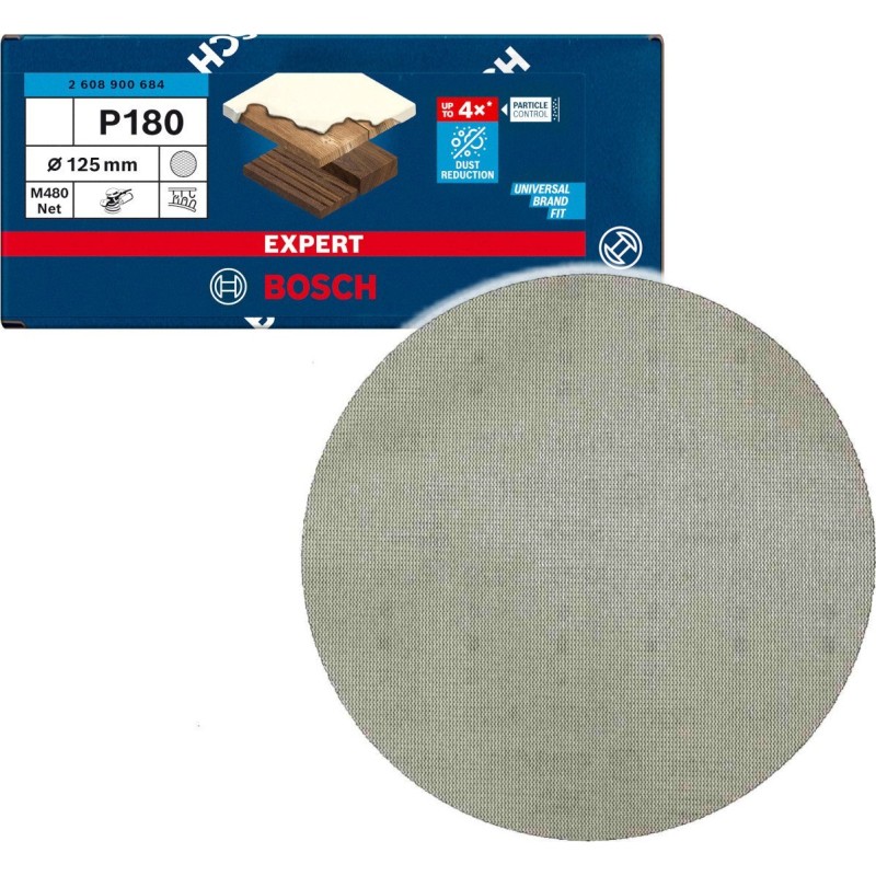 • Produktname: Bosch Professional 50x Schleifgitter EXPERT M480 (für Holzfarbe, Hartholz, Ø 125 mm, Körnung 180, Zubehör für Exzenterschleifer)