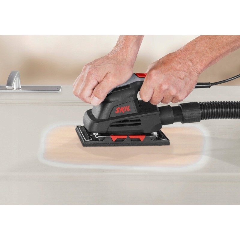 Die neueste Schwingschleifmaschine von SKIL ist mit einem 160-W-Motor ausgestattet. Sie ist langlebig und leistungsstark, dabei aber mobil und leicht.