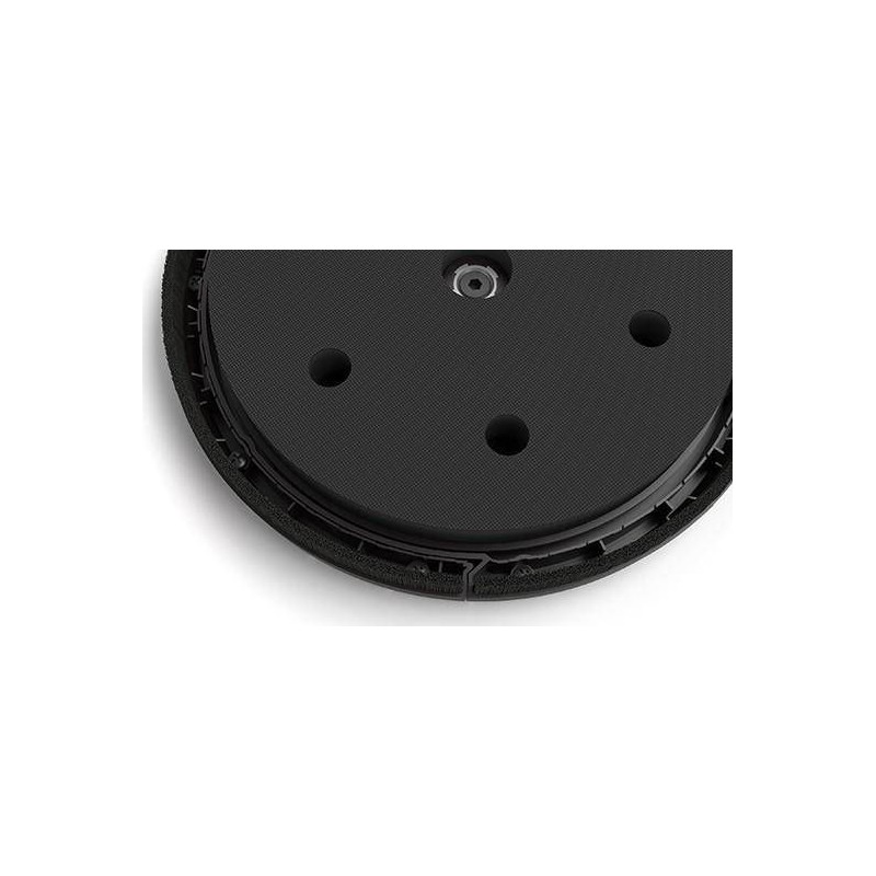 fest montierter, drehbarer Adapter für den Staubsaugerschlauch - Schwammscheibe, die mit Klettverschluss am Scheibenträger befestigt wird, was das Risiko von Beschädigungen beim Wechseln des Schleifzubehörs