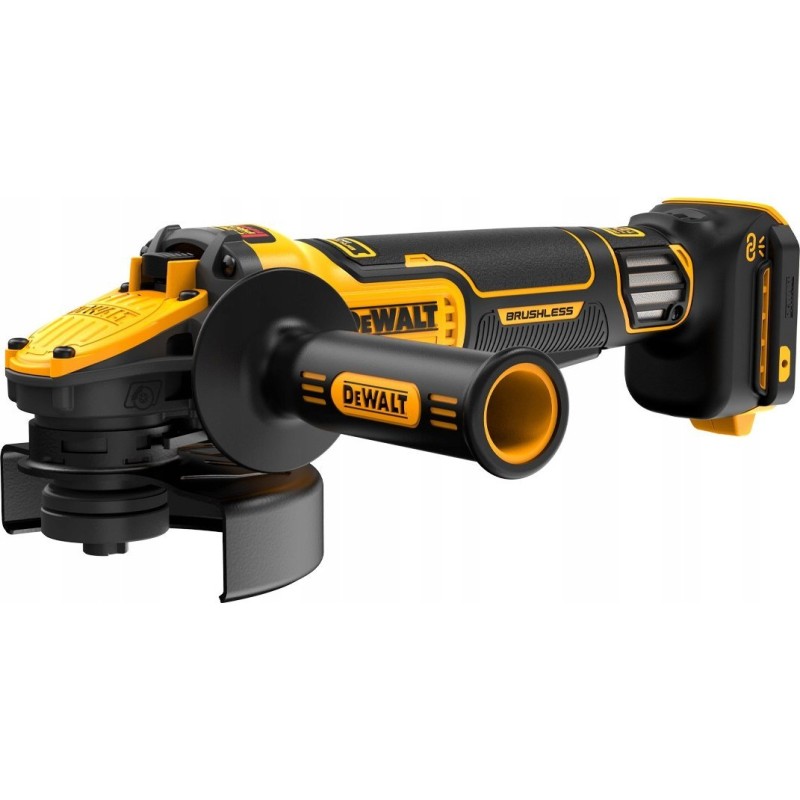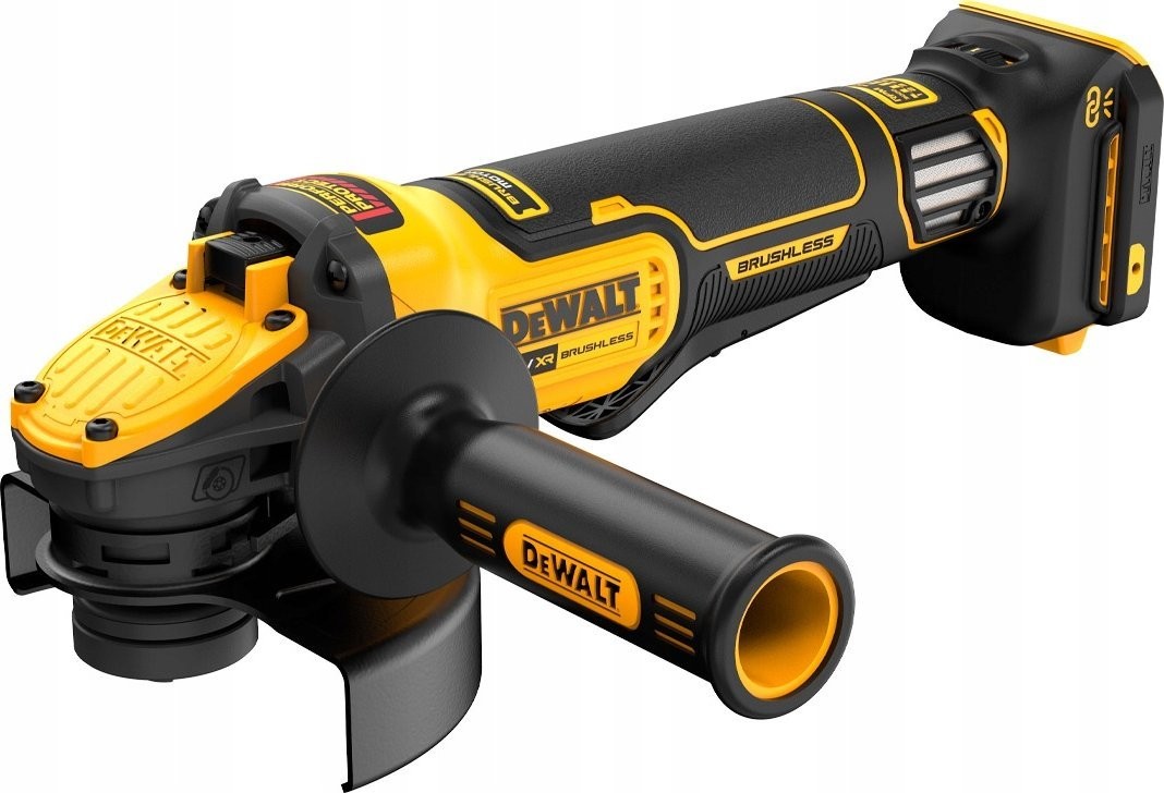 Der Winkelschleifer DeWALT DCG416VS ist ein bürstenloses Gerät mit einem Scheibendurchmesser von 125 mm, ausgestattet mit einer elektronischen Drehzahlregelung und einem Schiebeschalter. Das Gerät ist vollständig kompatibel mit den Akkus der Serien 18V XR Li-Ion und FlexVolt 54V. Neben der hohen Leistung steht auch die Sicherheit im Vordergrund. Der Sanftanlaufmechanismus schützt vor plötzlichen Ruckbewegungen und sorgt für mehr Arbeitssicherheit. Der Scheibenwechsel erfolgt werkzeuglos, und die Scheibenschutzhaube lässt sich leicht verstellen. Das Gerät verfügt über ein Power-OFF-System, das den Motor und das Modul vor Überlastung schützt. Die Perform-and-Protect-Technologie sorgt für Sicherheit bei der Anwendung – elektronische Bremsen und eine Kupplung verhindern das Risiko eines Rückschlags und dass das Gerät aus der Hand gerissen wird. Der Winkelschleifer verfügt zudem über eine Halterung für Chip TOOL CONNECT™, was die Nachverfolgung der Werkzeuge erleichtert.