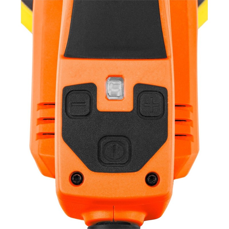 Die Schleifmaschine von NEO TOOLS bietet eine 6-stufige Drehzahlregelung, mit der Sie die Drehzahl im Bereich von 4.000 bis 10.000 Umdrehungen pro Minute einstellen können. So können Sie die Betriebsparameter präzise an die Art des Materials und die Anforderungen des jeweiligen Projekts anpassen.