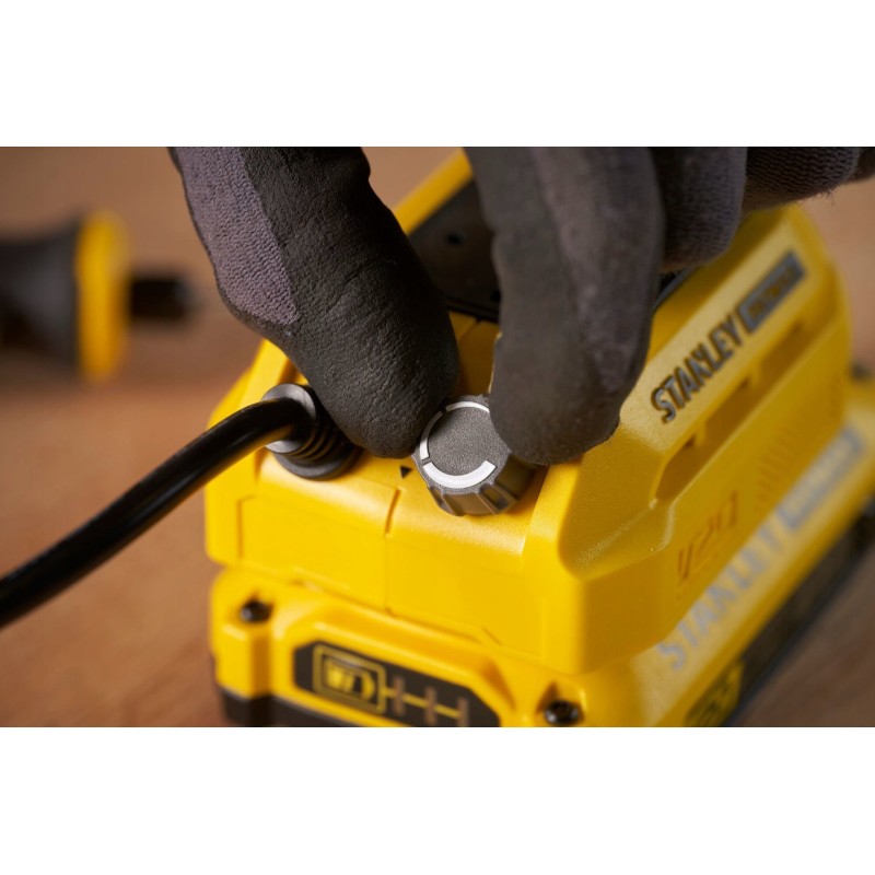 Der Akku-Betrieb der Stanley-Schleifmaschine SFMCE030B-XJ sorgt für hohen Bedienkomfort, da kein Anschluss an eine Steckdose erforderlich ist. So können Sie unter verschiedenen Bedingungen frei arbeiten, was die Effizienz und den Komfort bei der Ausführung Ihrer Aufgaben erhöht.