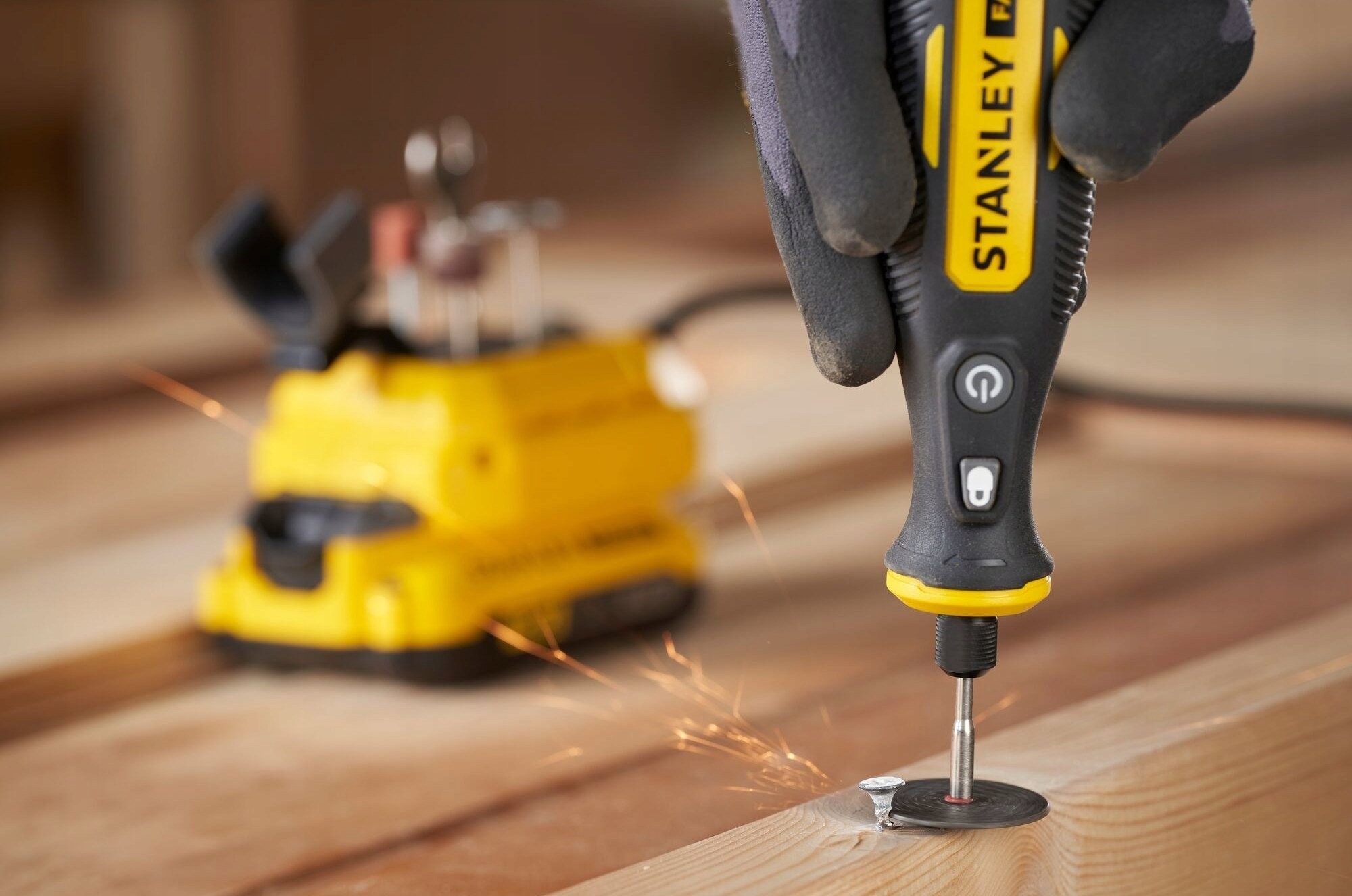 Stanley-Schleifmaschine – Akku-Mini-Schleif- und Gravurmaschine mit 33-teiligem Zubehörset SFMCE030B-XJ – Leistung und Mobilität in einem