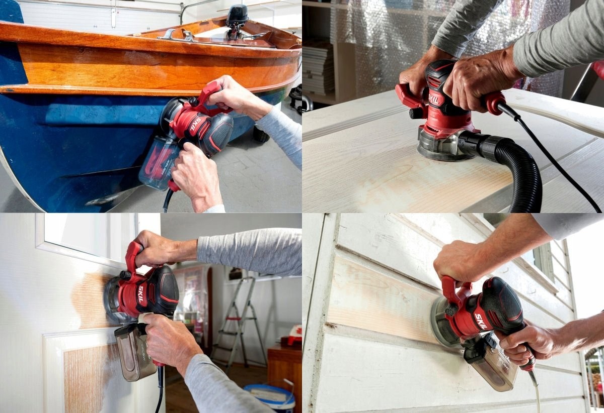Der Exzenterschleifer kombiniert oszillierende mit rotierenden Bewegungen. Diese Lösung findet in der Heimwerkstatt vielfältige Anwendung. Sie ermöglicht die Bearbeitung von Holz, aber auch von Metallen und Kunststoffen. Es ist ein unersetzliches Elektrowerkzeug für die Endbearbeitung beim Bau eigener Möbel. Darüber hinaus lässt sich damit Farbe von alten Schränken, Türen und Fenstern entfernen. Auf diese Weise können Sie viele Elemente der Inneneinrichtung mühelos renovieren.