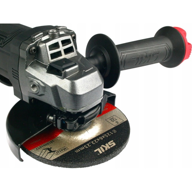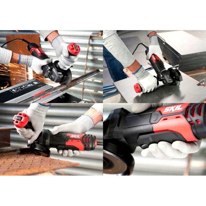 Der 125-mm-Winkelschleifer mit 850 W von SKIL ist ein robuster Winkelschleifer, der für verschiedene Schneid- und Schleifarbeiten konzipiert ist. Dank der Verwendung leichter Materialien und eines Metallgehäuses ist er einer der widerstandsfähigsten Winkelschleifer der Marke SKIL.