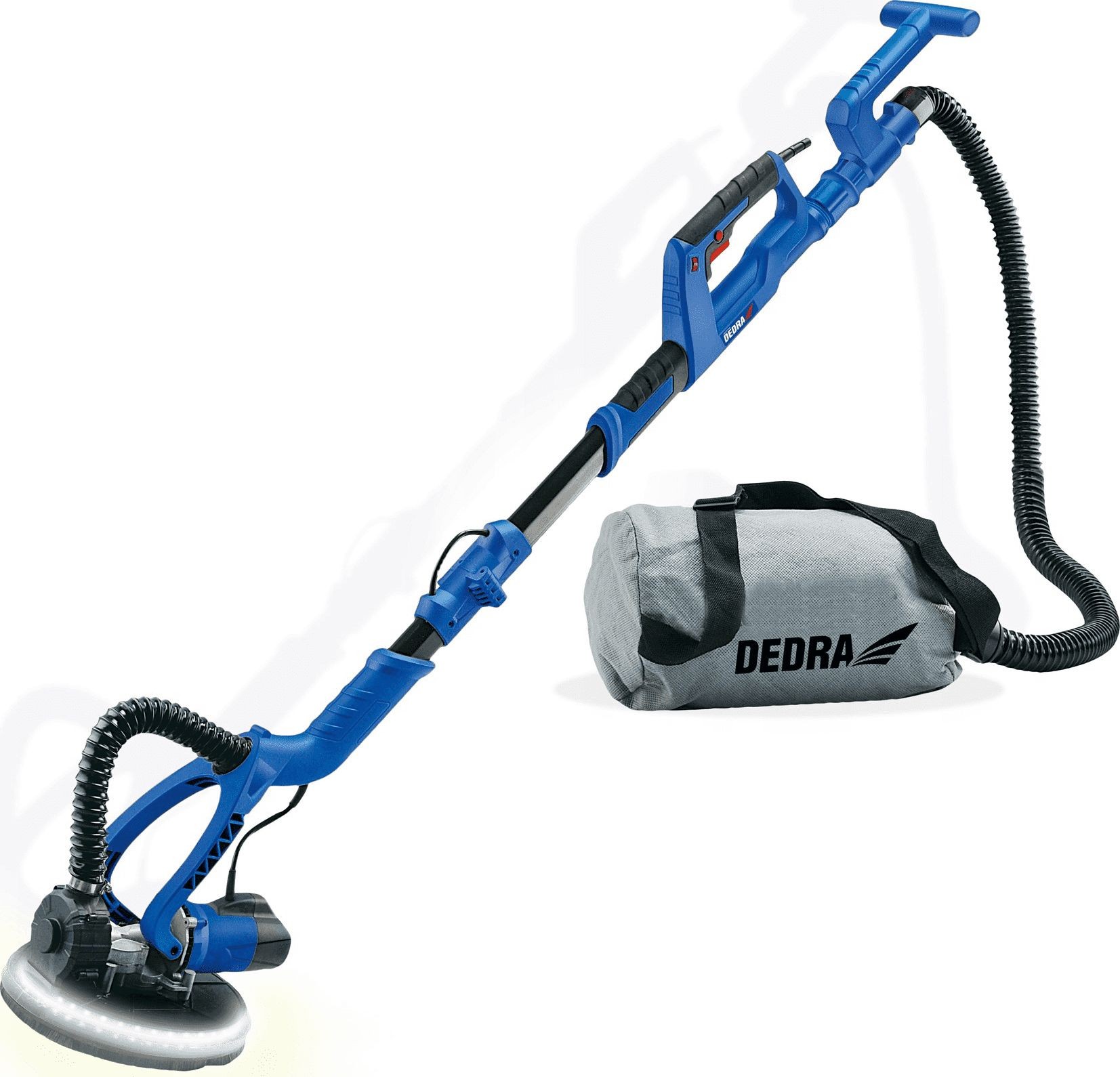 • Die DEDRA DED7766 Wandschleifmaschine für Gipsflächen mit LED-Beleuchtung und Staubabsaugung.