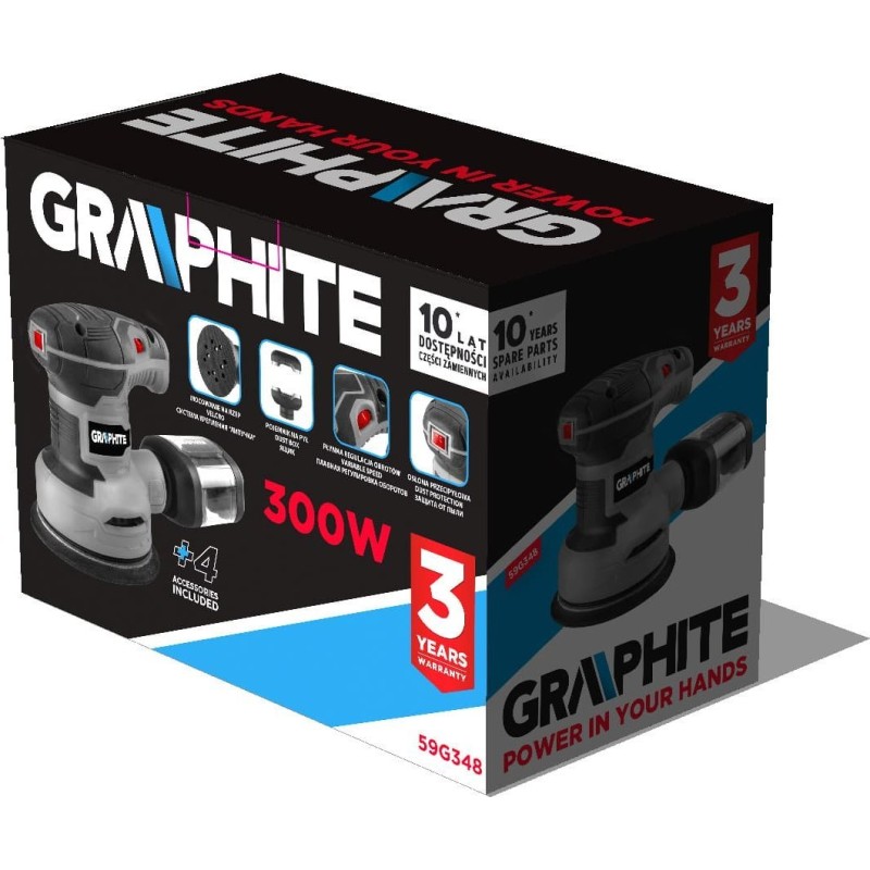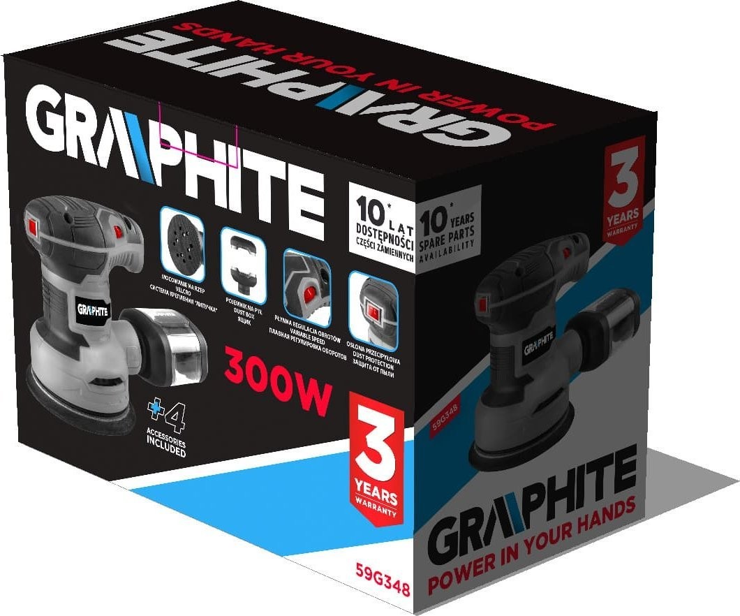 Ein praktischer und funktionaler Exzenterschleifer der Marke GRAPHITE. Diese Art von Werkzeug ist für kleinere Werkstatt- oder Reparaturarbeiten unverzichtbar. Das Gerät nutzt sowohl eine Pendel- als auch eine Drehbewegung – wodurch seine Einsatzmöglichkeiten erweitert und die Arbeitsergebnisse beschleunigt werden.
