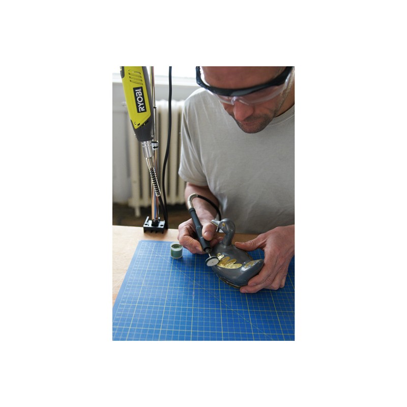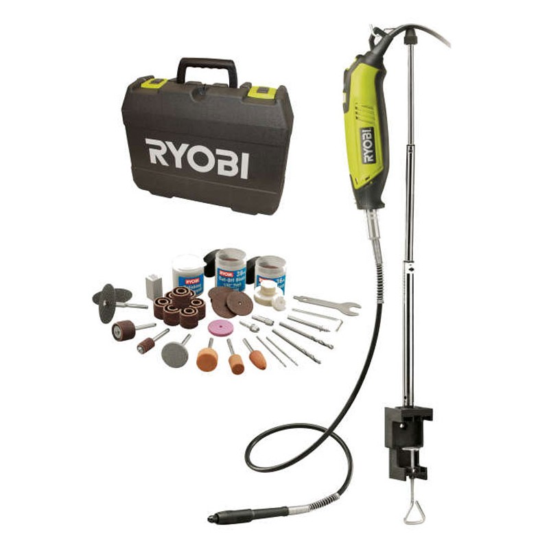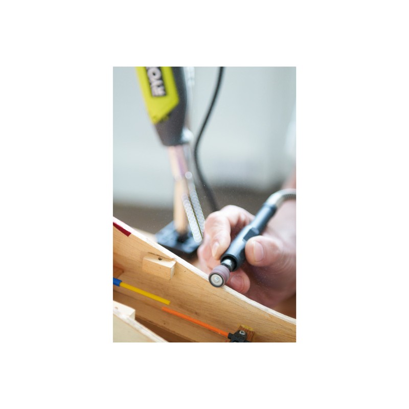 • Standardausstattung mit 115 Zubehörteilen, einschließlich biegsamer Welle und Werkstatt-Aufhängung