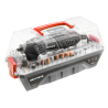 • Der Minischleifer verfügt über ein sehr umfangreiches Zubehörset, darunter Schleifsteine, Diamantfräser, Bohrer, Schleifstein, Polierfilze, Schleifkopf und Schleifbänder sowie Trennscheiben – insgesamt 190 Teile