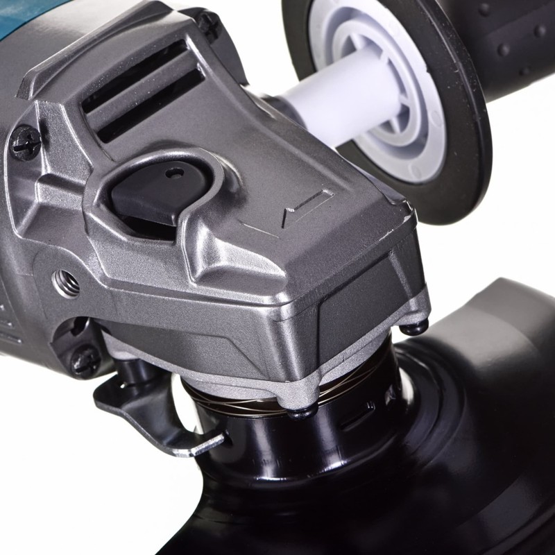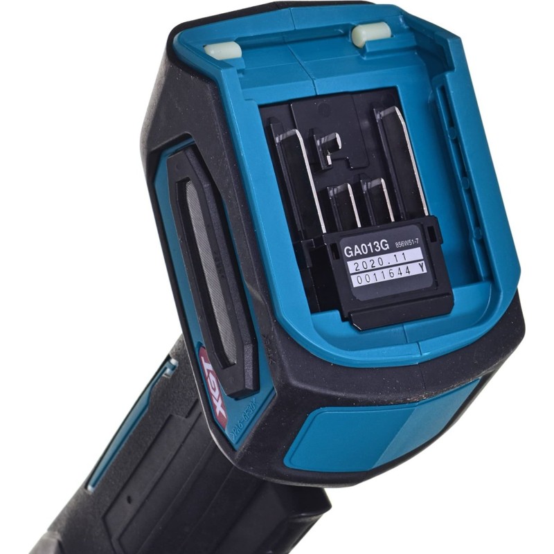 Makita GA013GZ. Produktfarbe: Grün, Motor: Bürstenloser Motor. Scheibendurchmesser der Schleifmaschine: 12,5 cm, Leerlaufdrehzahl (max.): 8500 U/min, Düsengröße: 2,22 cm. Stromquelle: Akku. Produktgewicht: 3 kg, Produktbreite: 140 mm