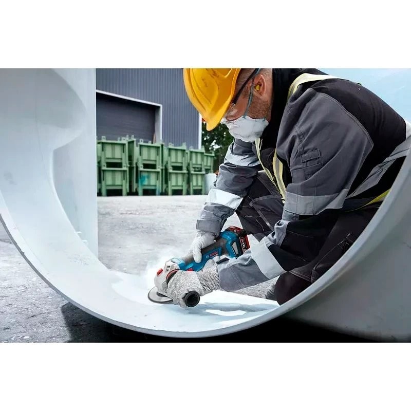 Das Modell GWS 18V-11 zeichnet sich durch eine ergonomische Bauweise aus, die auch bei langem Einsatz Komfort gewährleistet. Dank des Vibration Control-Systems reduziert das Werkzeug Vibrationen effektiv, was zu einer geringeren Ermüdung des Anwenders und einer höheren Präzision bei der Ausführung der Arbeiten führt.