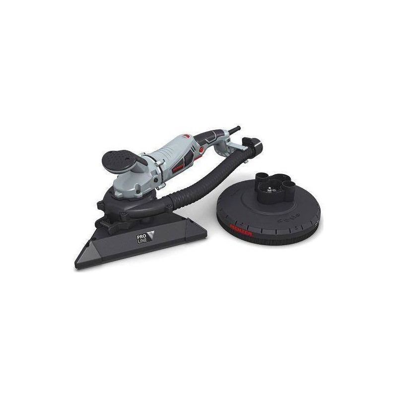 Dank des Kopfwechselsystems ist die MENZER TS 225 PRO das ideale Gerät für Trockenbauarbeiten. Mit Hilfe der runden Schleifscheibe erzielst du hervorragende Ergebnisse beim Schleifen großer Flächen. Mit dem dreieckigen Schleifteller erreichen Sie jede Ecke und Kante. Beide Schleifköpfe verfügen über Öffnungen, die eine gründliche Staubabsaugung ermöglichen.
